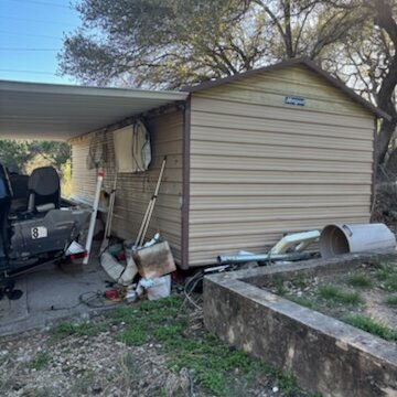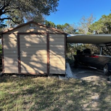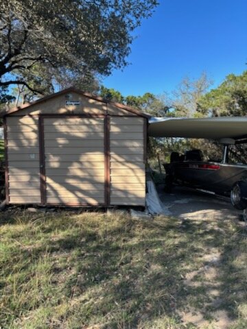 - Has a storage shed currently used for boat parking